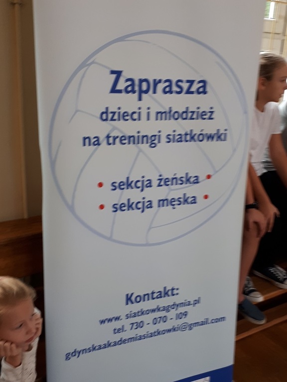 Dnia 12 października w naszej szkole odbył się pokaz treningu i rozgrywek siatkarskich zorganizowanych przez Gdyńską Akademię Siatkówki. Trener zachęcał dzieci do zapisów do sekcji żeńskiej i męskiej.