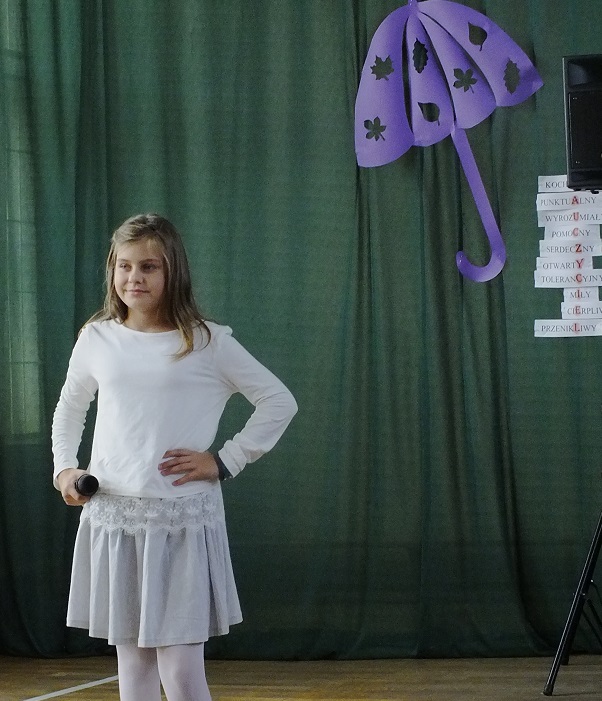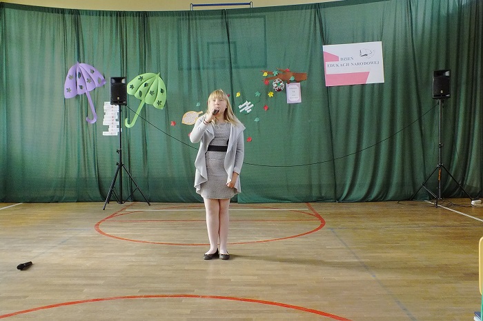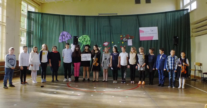 Uczniowie z klas IV C, D, E, V A oraz VII A i B przygotowali wraz z nauczycielem j. polskiego Haliną Grzegorczyk przedstawienie z okazji Dnia Edukacji Narodowej. Humorystyczne przedstawienie urozmaicono pokazem osobowości różnych typów belfra, koncertem skrzypcowym oraz wokalnymi popisami młodych artystów. Występ wywołał uśmiechy na twarzach widzów i został nagrodzony wielkimi brawami.