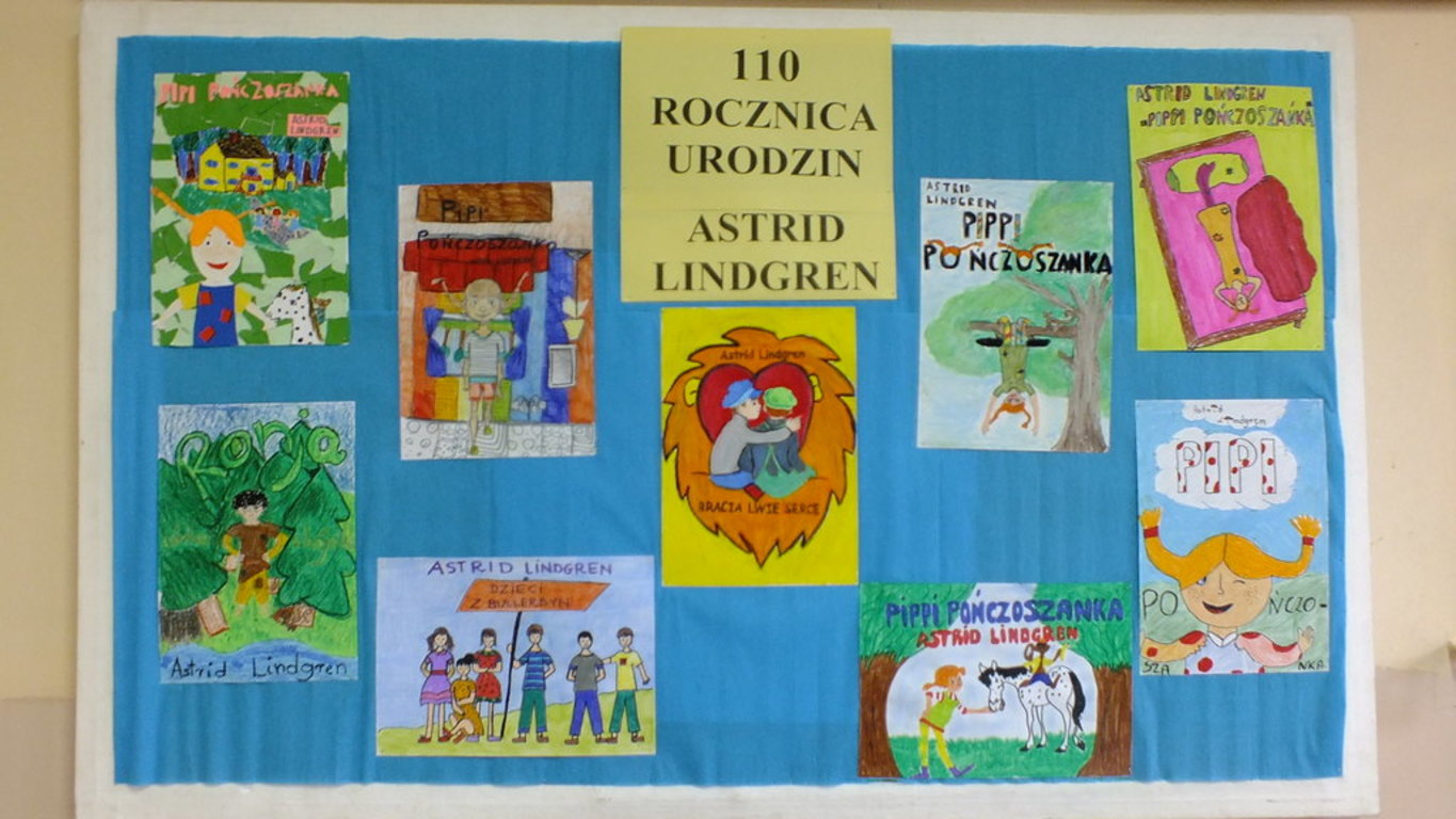 Biblioteka szkolna wraz z nauczycielem plastyki ogłosiła w listopadzie konkurs plastyczny na projekt okładki wybranej książki Astrid Lindren z okazji 110 rocznicy urodzin znanej pisarki. Na konkurs wpłynęło 130 prac. Wybór był bardzo trudny.