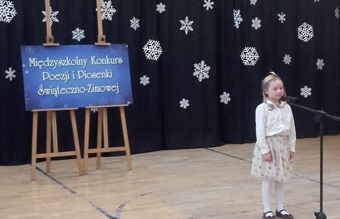 Dnia 7 grudnia 2017 r. w Szkole Podstawowej nr 26 odbył się Międzyszkolny Konkurs Poezji i Piosenki Świąteczno-Zimowej. W konkursie wzięły udział: Antonina Faka z klasy II b w kategorii poezja Świateczno-zimowa. Zaprezentowała wiersz Lucyny Krzemienieckiej ,,Wieczór wigilijny", oraz Martyna Loeff w kategorii piosenka świąteczno-zimowa. Zaśpiewała kolędę ,,Jezus malusieńki" i zdobyła III miejsce.
