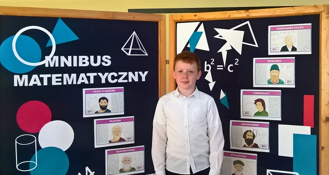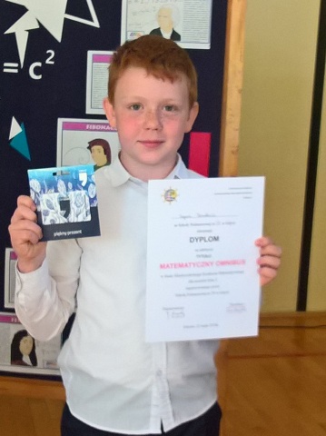 Dnia 16 kwietnia odbył się I etap Międzyszkolnego Konkursu Matematycznego " Omnibus" dla uczniów klas piątych. Z naszej szkoły do II etapu, który odbył się w Szkole Podstawowej nr 29 w Gdyni został zakwalifikowany Szymon Danielewicz z klasy V C. Dzisiaj - 22 maja - jesteśmy już po II etapie w którym udział wzięło 10 reprezentantów z gdyńskich szkół. Szymon został laureatem - wyliczył i wypowiedział, czyli wywalczył I miejsce.