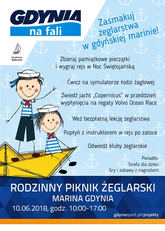 Ogromny sukces wiosennej edycji programu edukacji żeglarskiej „Gdynia na fali” zaowocuje w niedzielę tj. 10 czerwca wielkim Rodzinnym Piknikiem Żeglarskim na terenie Mariny Gdynia.
