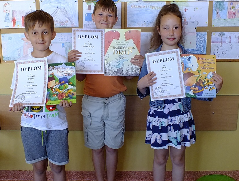 Dnia 6 czerwca nastąpiło rozstrzygnięcie szkolnego konkursu "Mam pomysł na angielski komiks" dla klas III. Nagrodzeni uczniowie to: