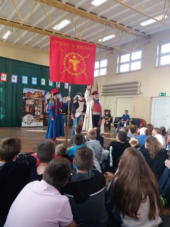 Starożytna Grecja i Rzym – młodzież dowiedziała się, kiedy zaczęła się starożytność i zapoznała z kultura Grecji i Rzymu. Uczniowie zobaczyli, jak ubierali się Grecy, poznali symbolikę ubiory Rzymian. Poznali sposób walki falangi greckiej, fenomen Aleksandra Wielkiego oraz taktykę walki legionów rzymskich. Spotkanie zakończyło się spotkaniem z gladiatorami.
