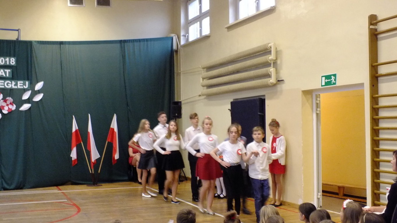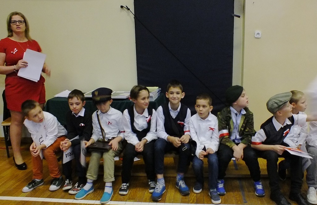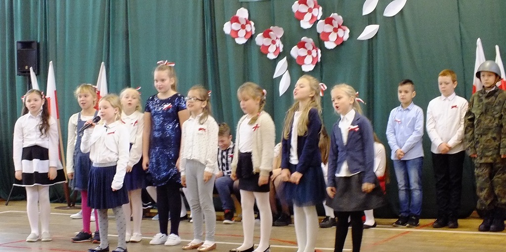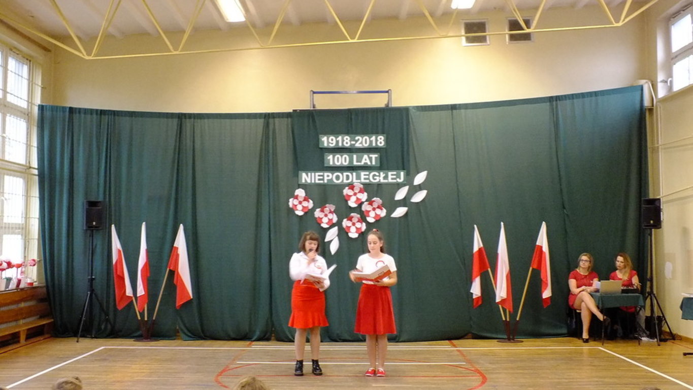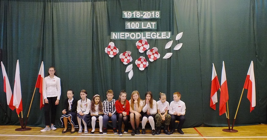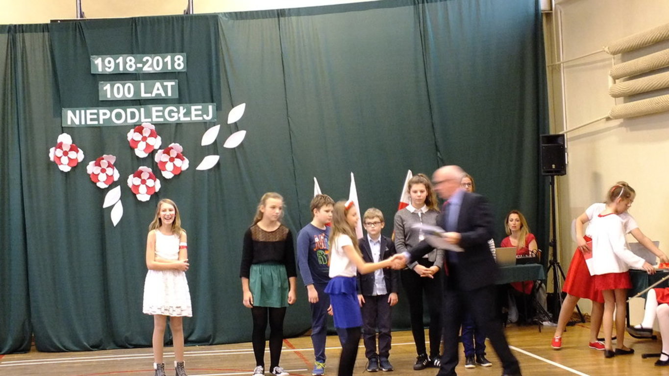 9 listopada b.r. w naszej szkole obchodziliśmy setną rocznicę niepodległości Polski. Przygotowania do tego dnia trwały od początku 2018 r., kiedy to opracowany został projekt „Dla Niepodległej”, który był wdrażany od kwietnia do listopada bieżącego roku. Zadania wyznaczone projektem zostały zrealizowane oraz podsumowane w tym bardzo uroczystym dniu, gdzie słowem, pieśnią, muzyką i tańcem świętowaliśmy rocznicę niepodległości. Polonez w formie tańca i polonez odegrany na skrzypcach wprowadziły słuchaczy w radosny i niezwykły nastrój. Kolory białe i czerwone wyraźnie odnosiły się do barw narodowych. Wstęgi narodowe przypięte do strojów wykonawców i słuchaczy wskazywały na niezwykłość wydarzenia. Mieliśmy okazję obejrzeć przedstawienie „Ta, co nie zginęła”, wysłuchać pieśni patriotycznych oraz prac literackich: Kartka z pamiętnika mojego pradziadka. Ponadto wzięliśmy udział we wspólnym śpiewaniu czterech strof „Hymnu Polski”, który o godzinie 11.11 zabrzmiał w szkołach całej Polski. Rozstrzygnięcie konkursów plastycznych, historycznych oraz literackich stanowiło ważny punkt programu „Dla Niepodległej”. Pochwaliliśmy się również wycieczkami historyczno – przyrodniczymi, które odbyły się w październiku 2018 r. do różnych miejsc naszego regionu związanych z wydarzeniami, jakich doświadczyli Polacy w swojej historii nowożytnej. Na koniec uroczystości wyruszyliśmy ścieżkami naszej dzielnicy na Paradę Niepodległości.