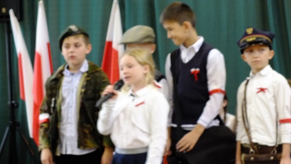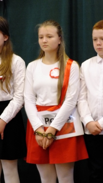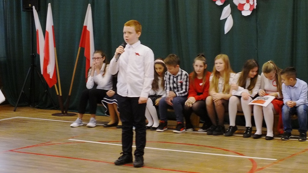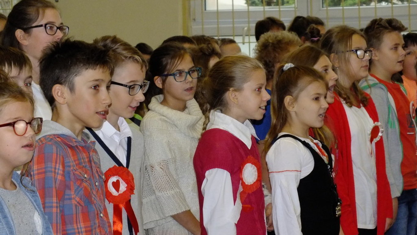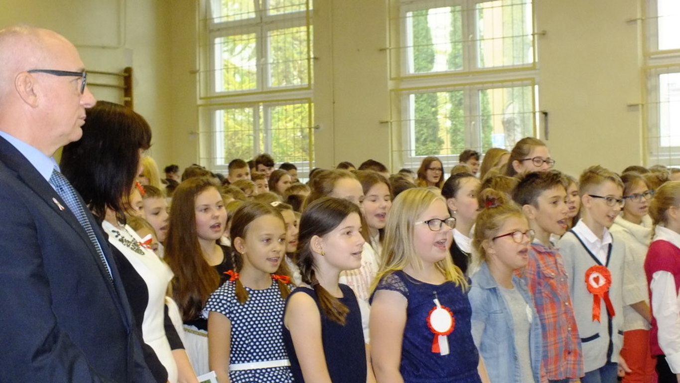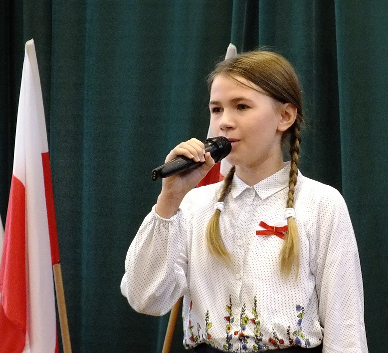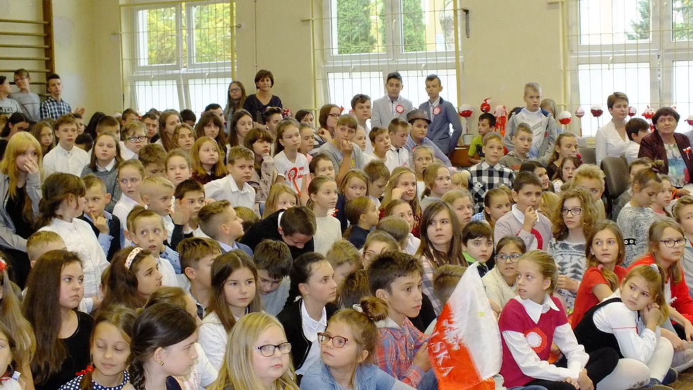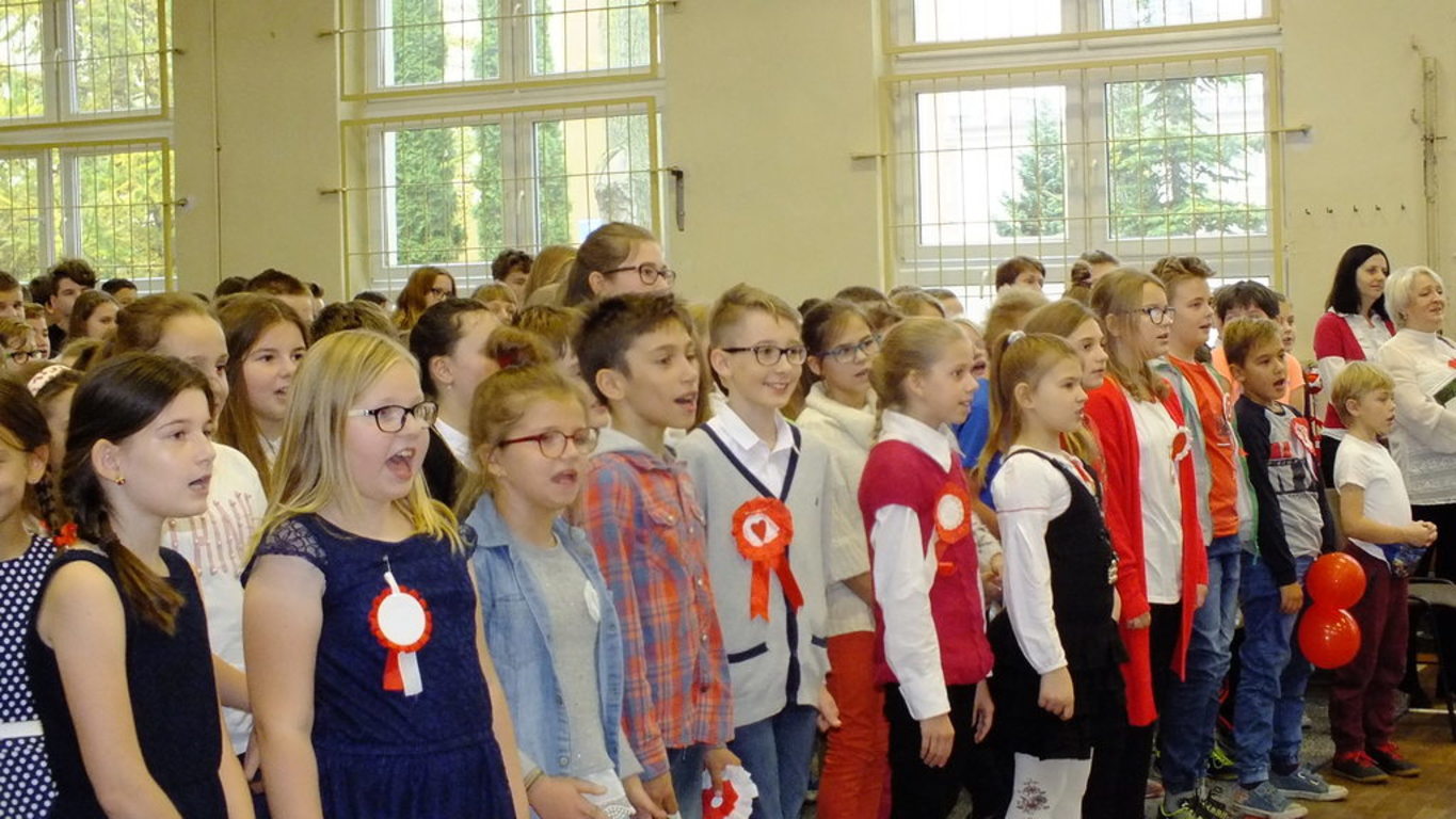 9 listopada b.r. w naszej szkole obchodziliśmy setną rocznicę niepodległości Polski. Przygotowania do tego dnia trwały od początku 2018 r., kiedy to opracowany został projekt „Dla Niepodległej”, który był wdrażany od kwietnia do listopada bieżącego roku. Zadania wyznaczone projektem zostały zrealizowane oraz podsumowane w tym bardzo uroczystym dniu, gdzie słowem, pieśnią, muzyką i tańcem świętowaliśmy rocznicę niepodległości. Polonez w formie tańca i polonez odegrany na skrzypcach wprowadziły słuchaczy w radosny i niezwykły nastrój. Kolory białe i czerwone wyraźnie odnosiły się do barw narodowych. Wstęgi narodowe przypięte do strojów wykonawców i słuchaczy wskazywały na niezwykłość wydarzenia. Mieliśmy okazję obejrzeć przedstawienie „Ta, co nie zginęła”, wysłuchać pieśni patriotycznych oraz prac literackich: Kartka z pamiętnika mojego pradziadka. Ponadto wzięliśmy udział we wspólnym śpiewaniu czterech strof „Hymnu Polski”, który o godzinie 11.11 zabrzmiał w szkołach całej Polski. Rozstrzygnięcie konkursów plastycznych, historycznych oraz literackich stanowiło ważny punkt programu „Dla Niepodległej”. Pochwaliliśmy się również wycieczkami historyczno – przyrodniczymi, które odbyły się w październiku 2018 r. do różnych miejsc naszego regionu związanych z wydarzeniami, jakich doświadczyli Polacy w swojej historii nowożytnej. Na koniec uroczystości wyruszyliśmy ścieżkami naszej dzielnicy na Paradę Niepodległości.