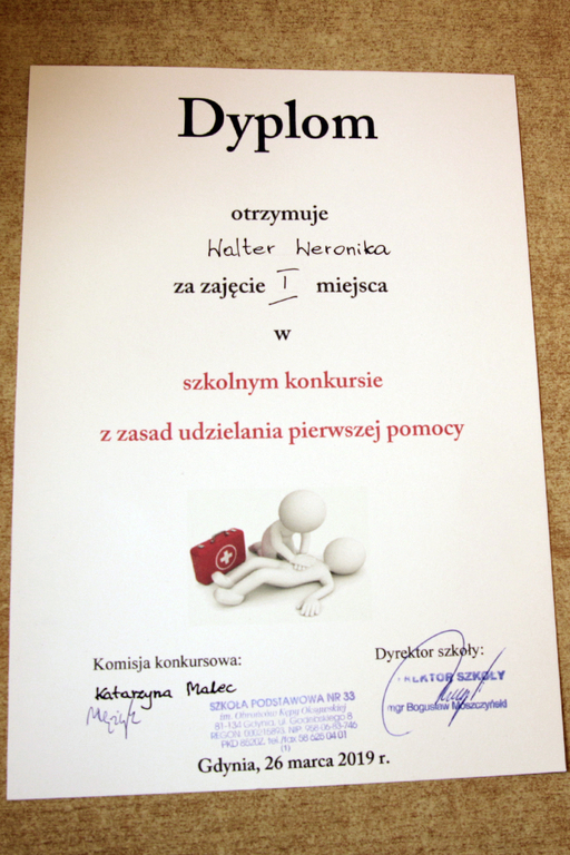 26 marca 2019 r. odbył się Szkolny Konkurs z zakresu udzielania pierwszej pomocy dla uczniów klas VIII.