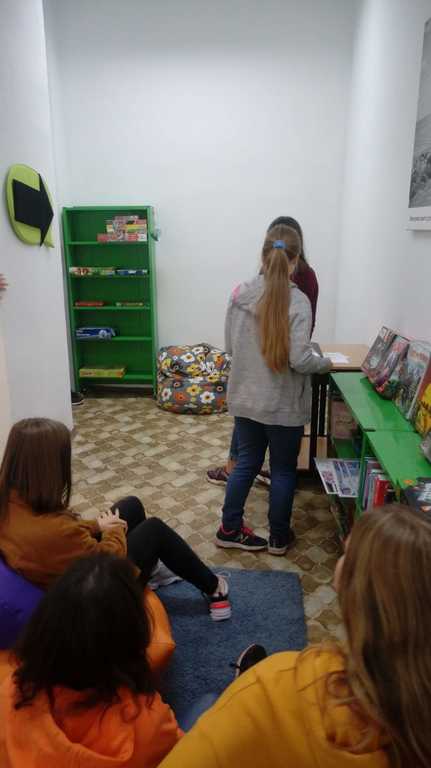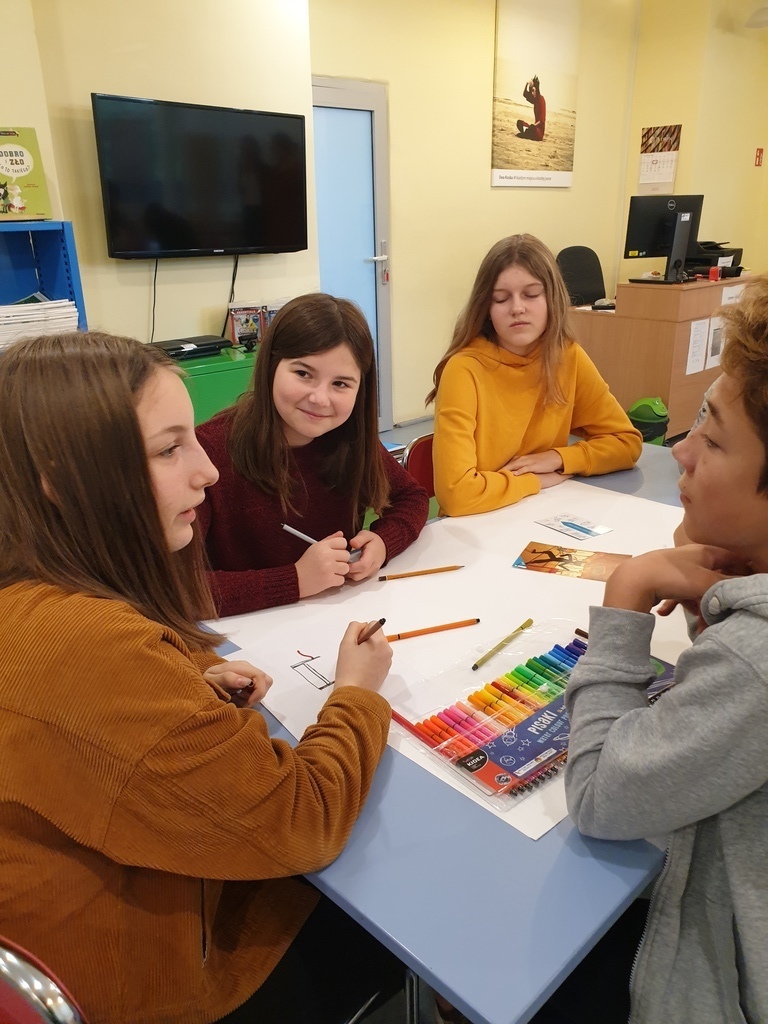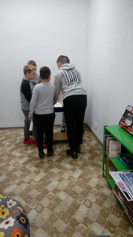Uczniowie kl. VII c wraz z wychowawczynią Iwoną Paliszewską brali udział w warsztatach tworzenia nowej przestrzeni w Bibliotece na Oksywiu.