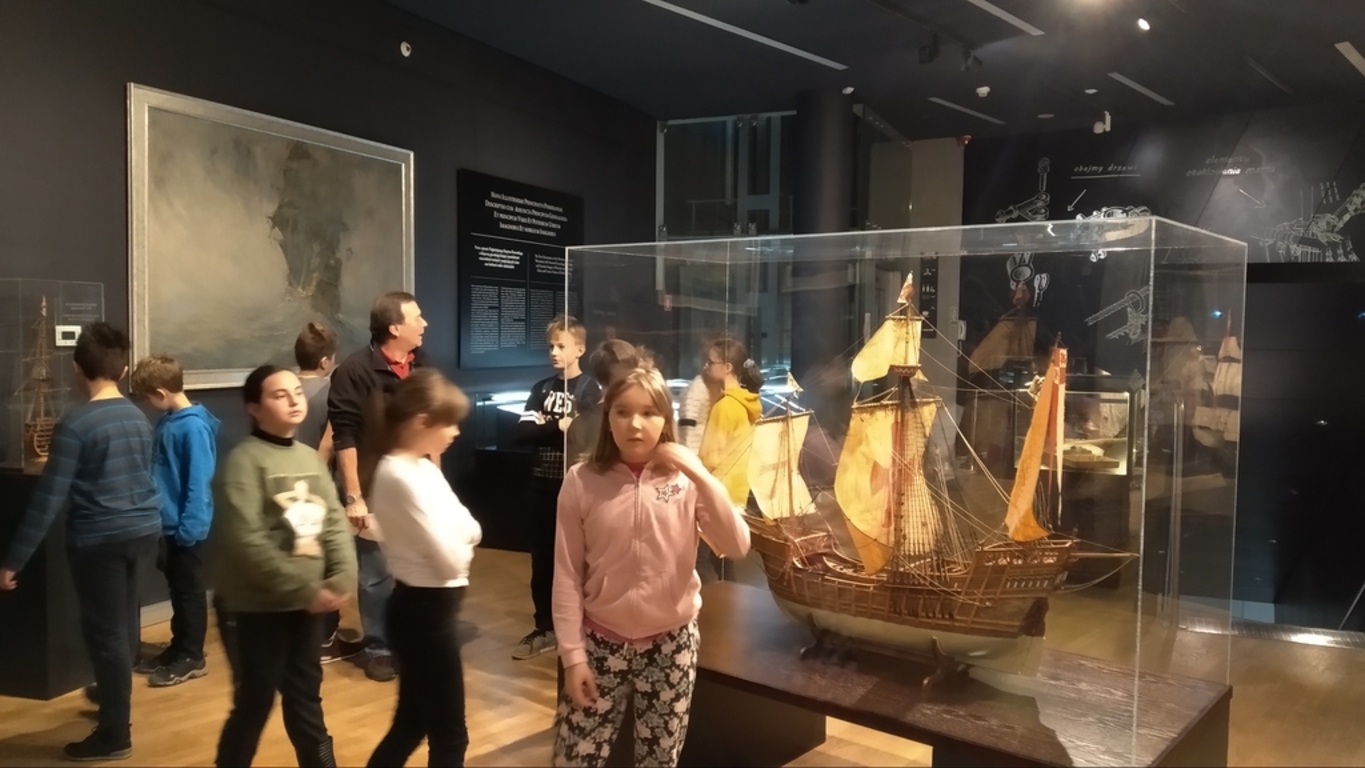 Dnia 2 grudnia klasa V D wybrała się do Muzeum Marynarki Wojennej w Gdyni. Uczniowie wzięli udział w zabawie edukacyjnej „Poszukiwanie marynarskiego skarbu”. Przy pomocy różnorodnych zadań i łamigłówek poszukiwacze musieli odszyfrować kod, który zdradził, gdzie jest ukryty w muzeum skarb. Poprzez zabawę uczniowie poznali historię Marynarki Wojennej.