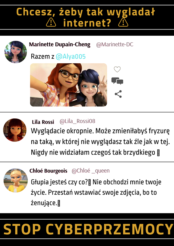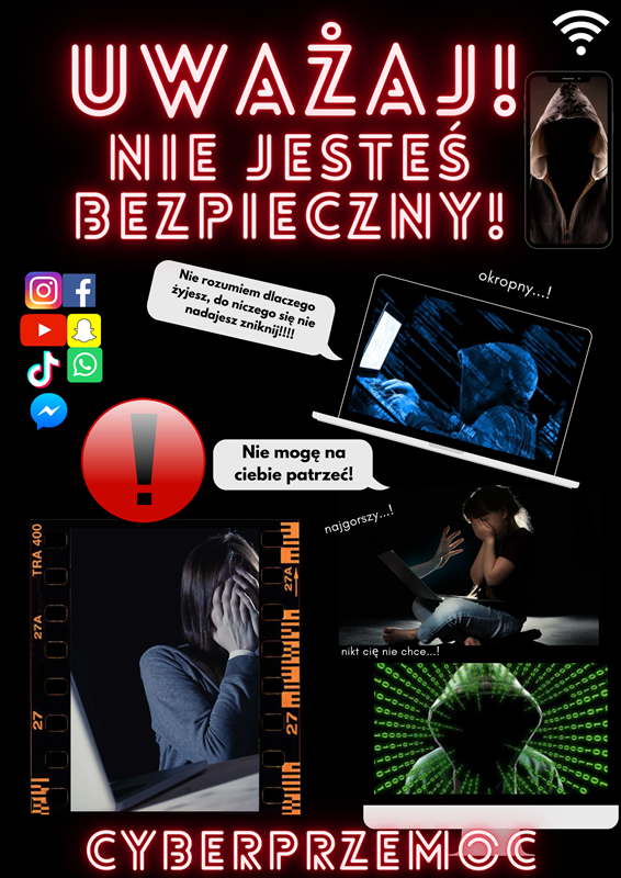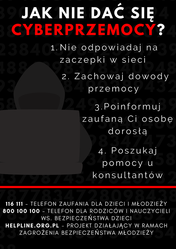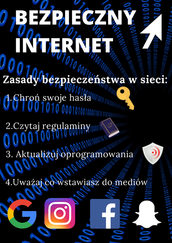 Podczas lekcji informatyki przeprowadzono pogadanki na temat zagrożeń w internecie, cyberprzemocy, hejtowania, uzależnień oraz zasad bezpieczeństwa w sieci. Uczniowie klasy VII a, VII e i VII f wykonali rebusy a klasy VIII b i VIII c plakaty, by w ten sposób upowszechniać postawy związane z rozważnym korzystaniem z dobrodziejstw internetu.