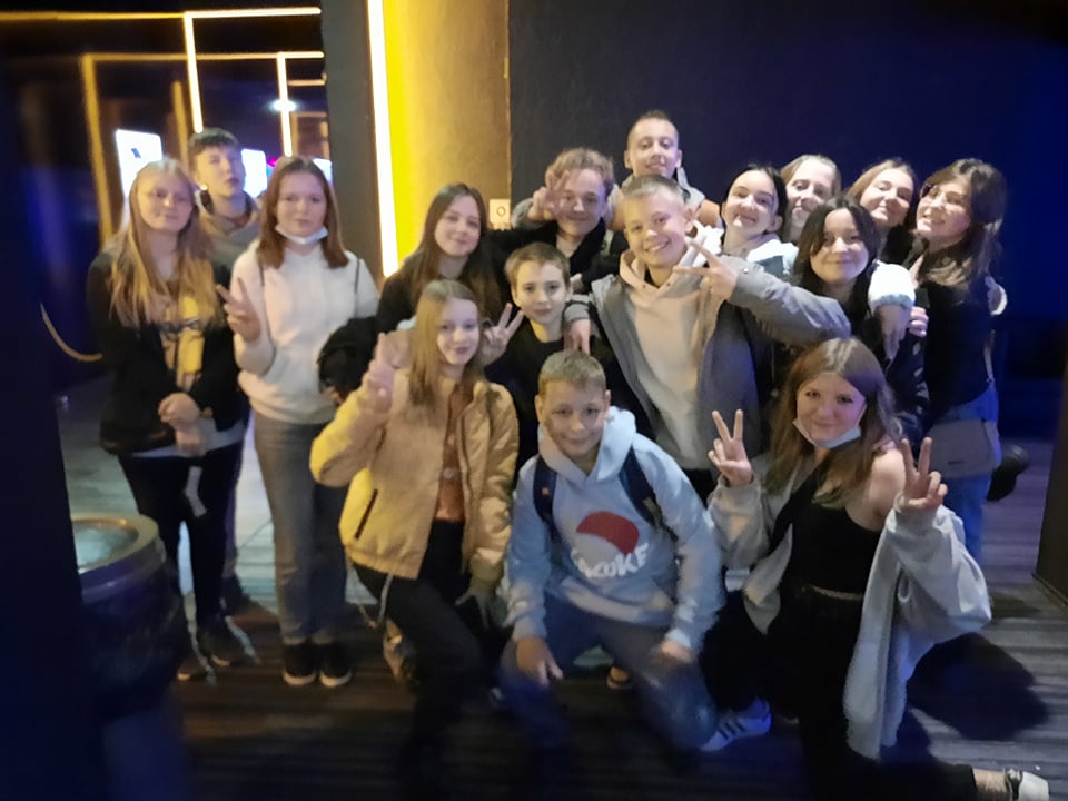 Dnia 8 października uczniowie klas IV a, VIII d, VIII e i VIII f wzięli udział w wyjściu do kina. Uczniowie obejrzeli film pt. „Wszyscy za jednego”, którego akcja dzieje się w Norwegii w czasie II wojny światowej. Rodzeństwo Gerda i Otto postanawiają pomóc dwójce żydowskich dzieci przedostać się do wolnej Szwecji. Była to piękna opowieść o przyjaźni, odwadze i lojalności, która dostarczyła nam wielu wzruszeń.