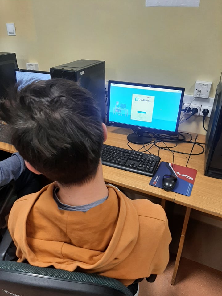 Uczniowie kl. VIII a, VIII e i VIII f programowali w Scratchu oraz wykonywali zadania w aplikacji PixBlocks.