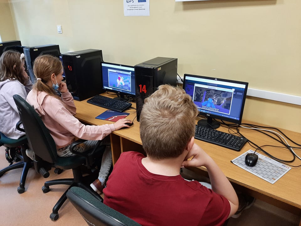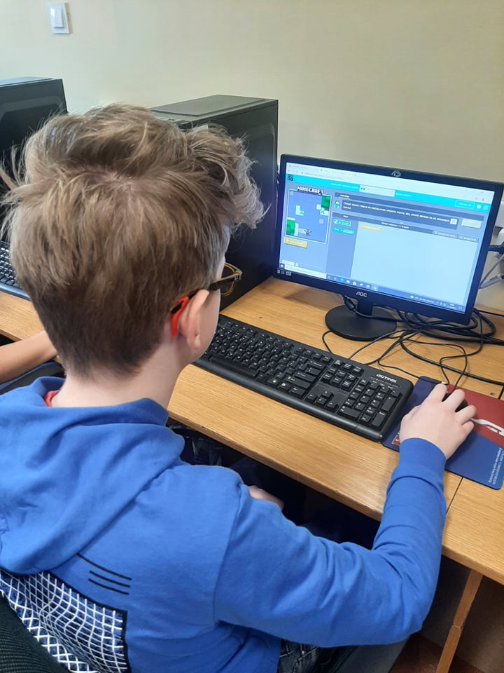 W klasie V a i V b uczniowie układali kod dzięki któremu bohaterowie gry Minecraft mogli sprostać wyzwaniom.