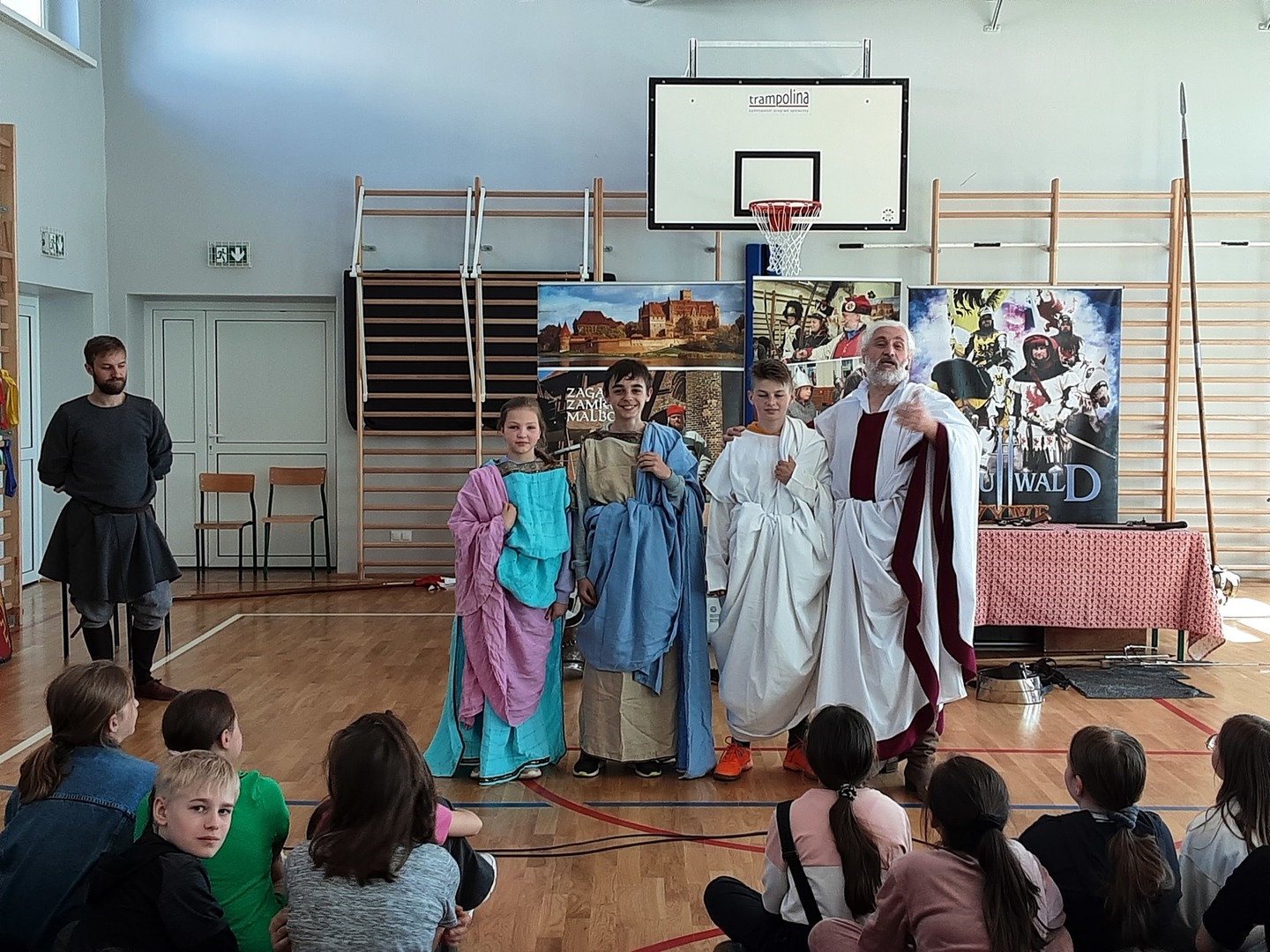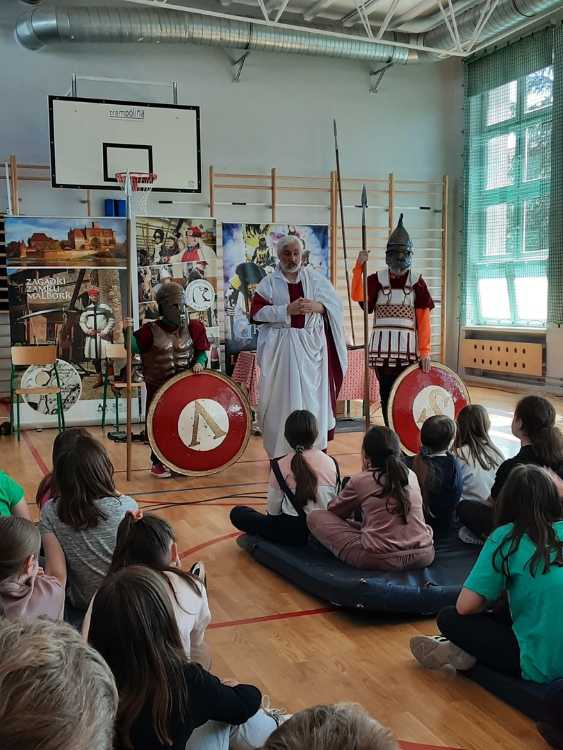 Dnia 17 maja 2022 r. gościliśmy w naszej szkole Chorągiew Komturstwa Gniewskiego, która przybliżyła naszym uczniom czasy starożytnej Grecji i Rzymu oraz okres powstań narodowo-wyzwoleńczych.