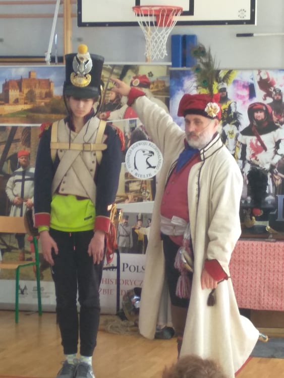 Bogactwo strojów i uzbrojenia ułatwiło młodzieży z klas siódmych i ósmych określenie charakteru i różnic między powstaniem listopadowym a styczniowym. Poznali jaką rolę pełnił kosynier oraz ułan w wojsku Księstwa Warszawskiego. W wędrówce przez lata spotkali postać Tadeusza Kościuszki, Napoleona Bonaparte, Józefa Wybickiego, Piotra Wysockiego, aby po 123 latach traumatycznych doświadczeń Polaków spotkać Naczelnika Józefa Piłsudskiego – symbol odzyskania Niepodległości.