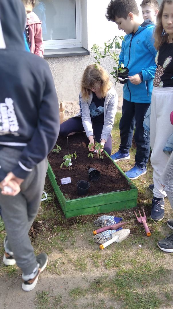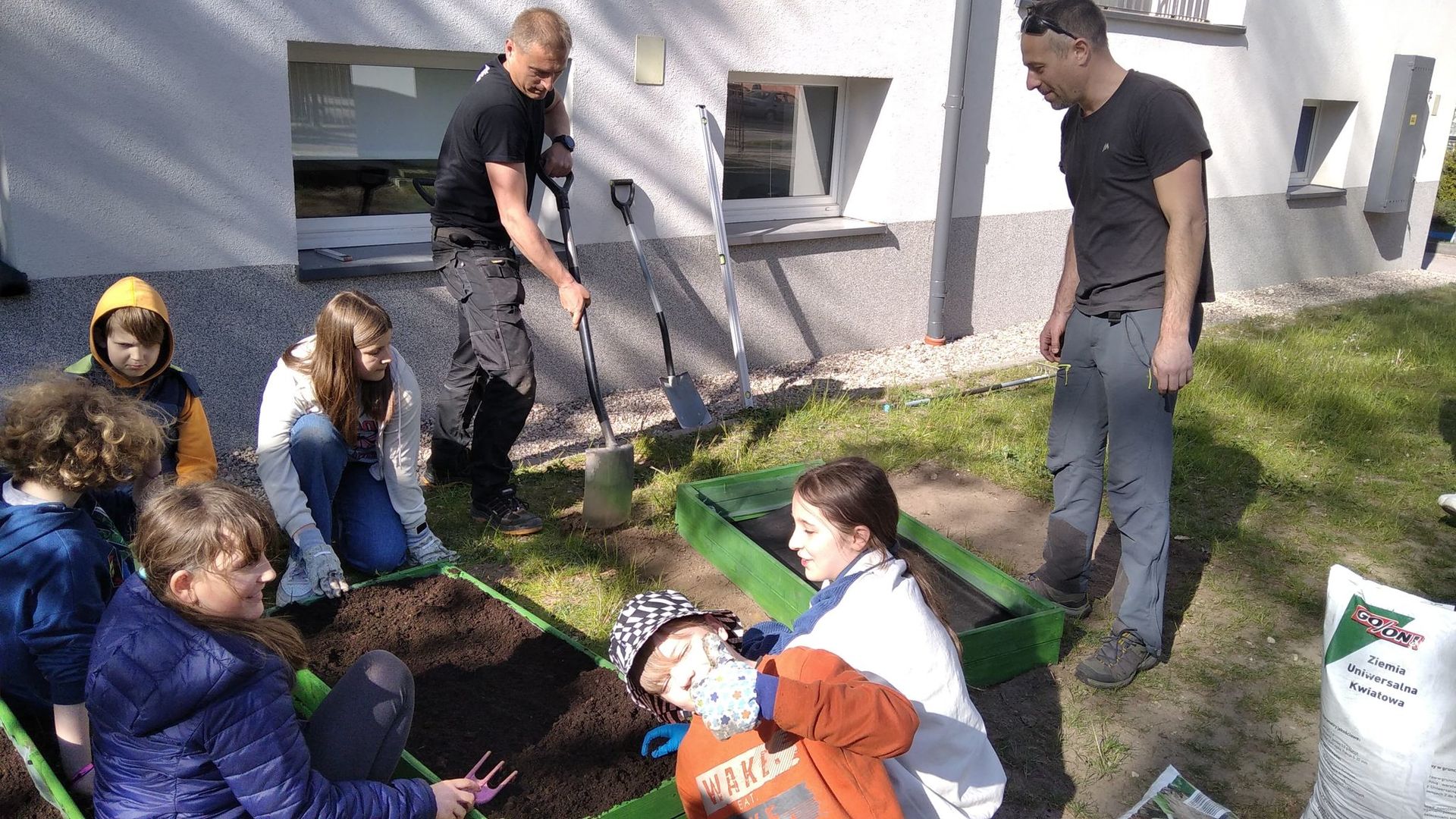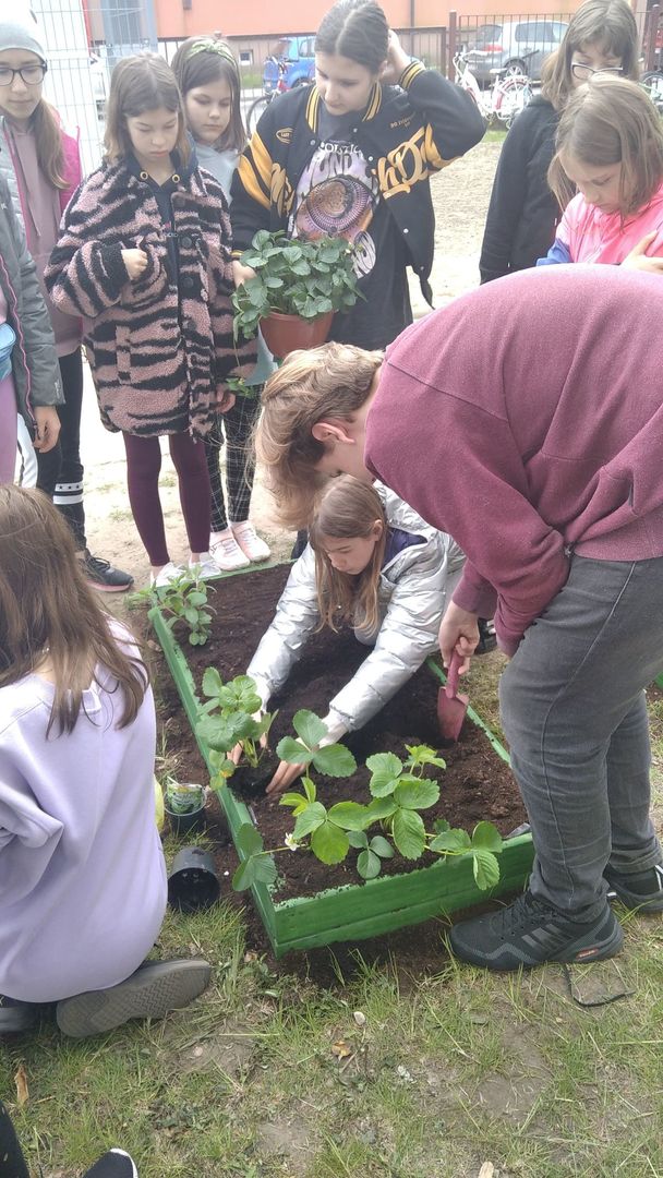 Wychowankowie wspólnie z rodzicami i nauczycielami biologii przygotowali wzniesione grządki, w których podczas lekcji zasiali m. in. koper, bazylię oraz zasadzili pomidory i truskawki. Nasza młodzież pielęgnowała ogród dbając o odpowiednie warunki do wzrostu roślin, czego pierwsze efekty możemy już podziwiać w przyszkolnym warzywniku.