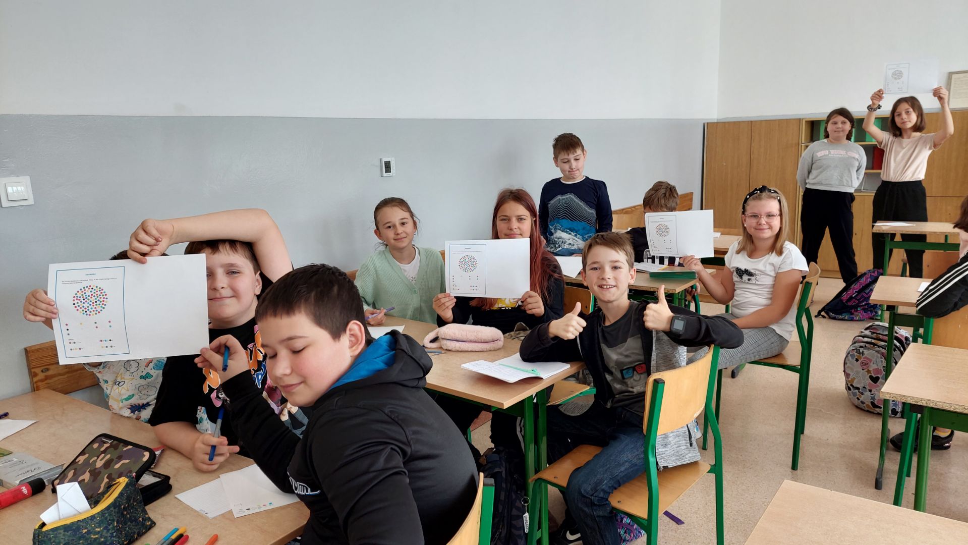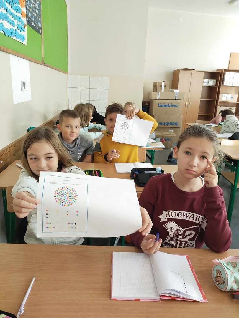 Z okazji Międzynarodowego Dnia Kropki uczniowie naszej szkoły bawili się świetnie podczas rozwiązywania różnorodnych zadań matematycznych.