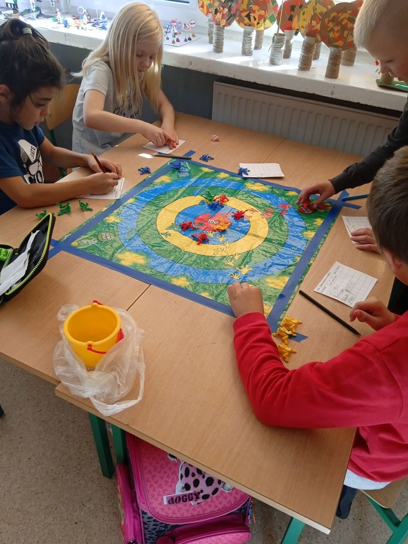 W tym roku szkolnym w klasie 2a na lekcjach matematyk,i uczniowie realizują opracowaną przez nauczycielkę Iwonę Tuturusz innowację " Matematyczne potyczki" , Głównym jej celem jest oswajanie uczniów z trudnymi zagadnieniami matematycznymi. Dzięki stosowanym grom i zabawom dzieci łatwiej uczą się i utrwalają zagadnienia, rozwiązują problemy i stosują strategię. Uczą się również współpracy i działania zespołowego.