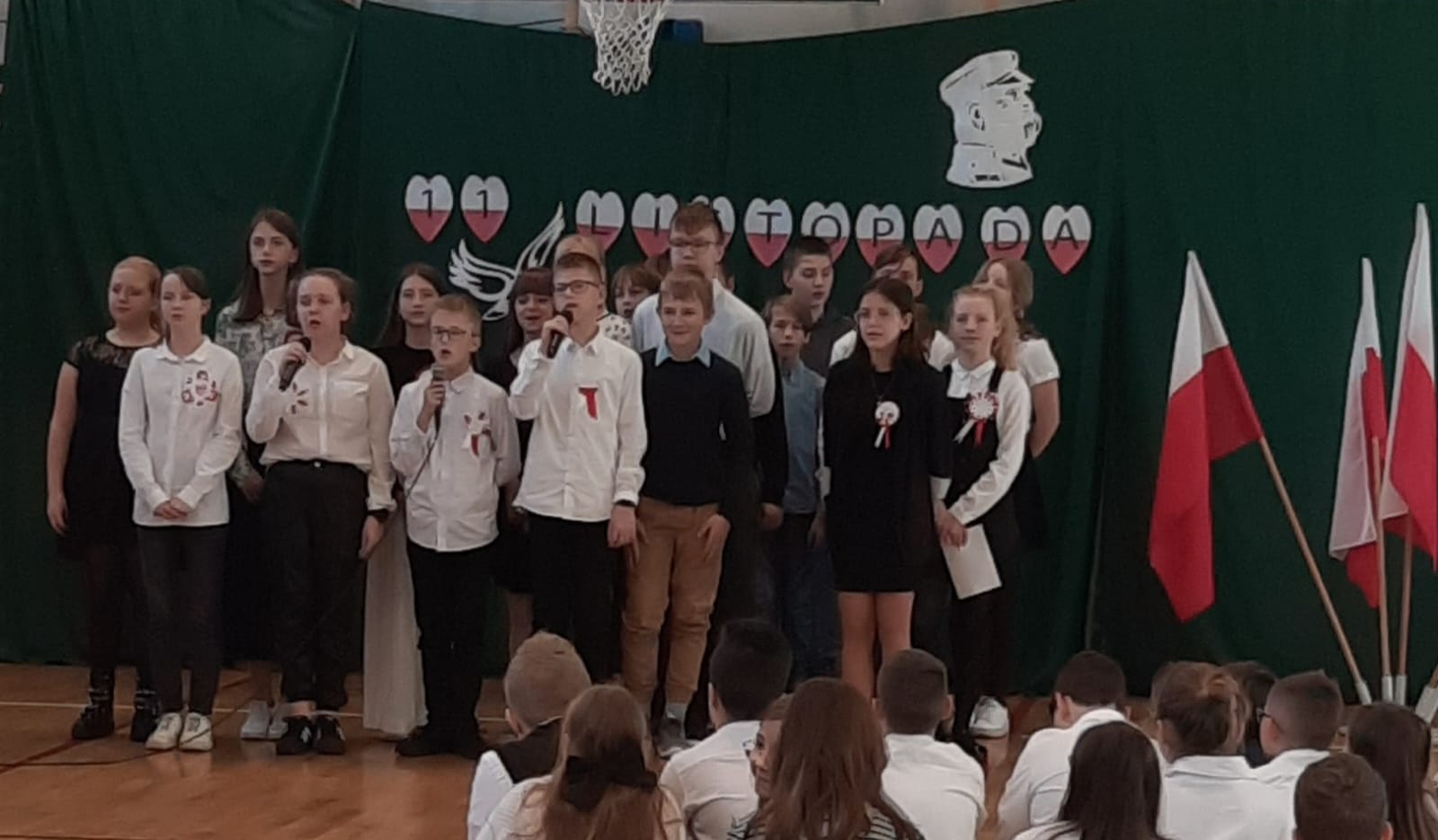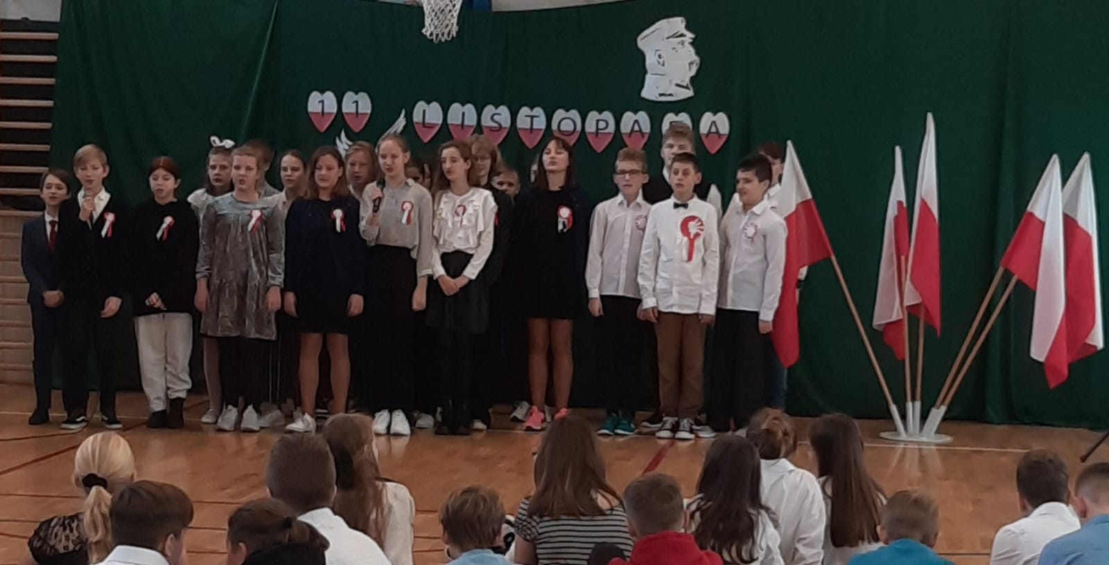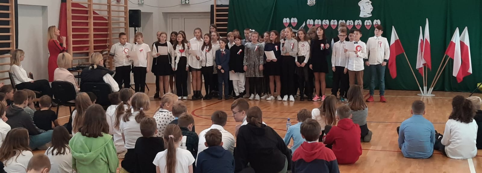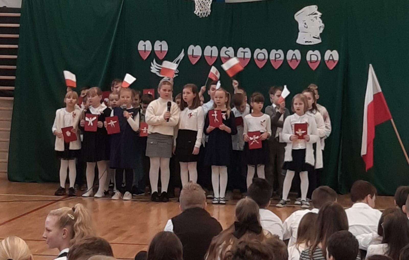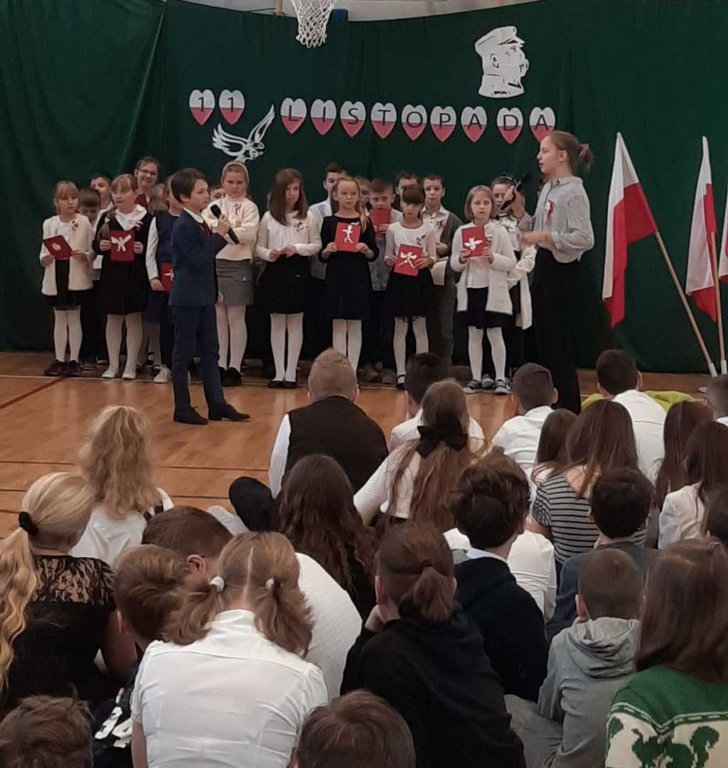 Dnia 8 listopada w naszej szkole wspólnie świętowaliśmy Narodowy Dzień Niepodległości. Uczniowie przygotowali piękne przedstawienie, które przypomniało wszystkim ważne informacje związane z tym niezwykle ważnym Świętem. Wspaniale zabrzmiały wykonywane przez uczniów pieśni patriotyczne, a komentarze do nich pomogły nam lepiej zrozumieć sens utworów. Zaangażowanie wykonawców i ich talenty wokalne zachwyciły wszystkich!