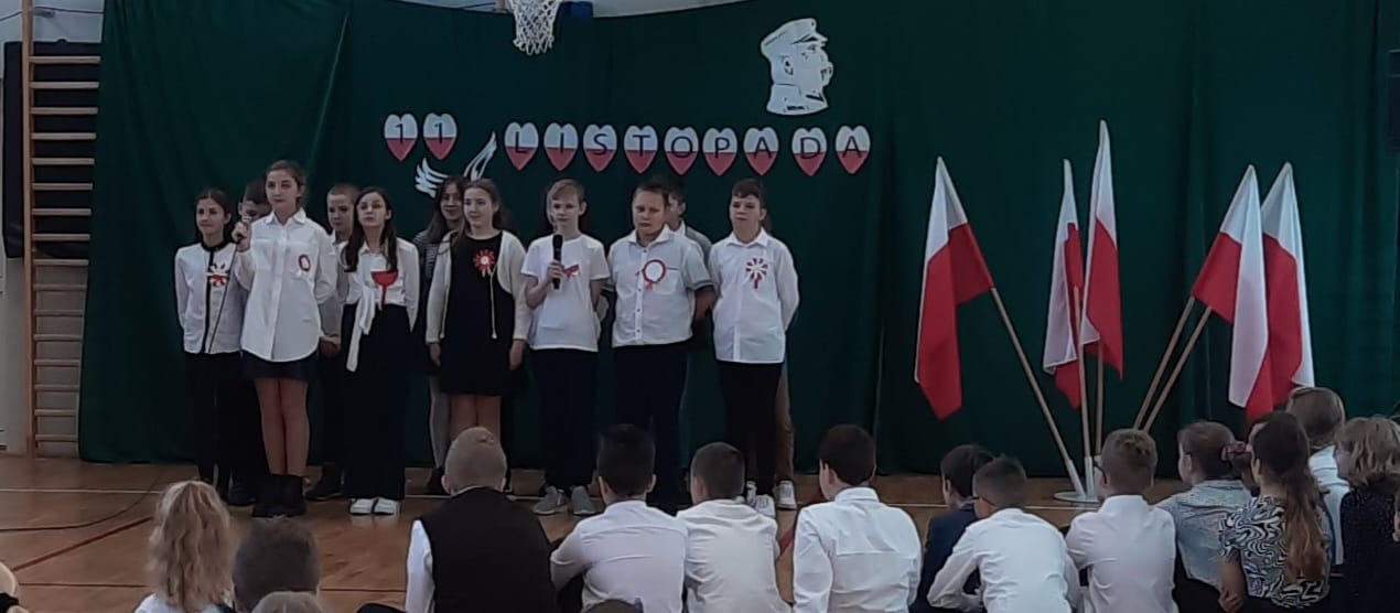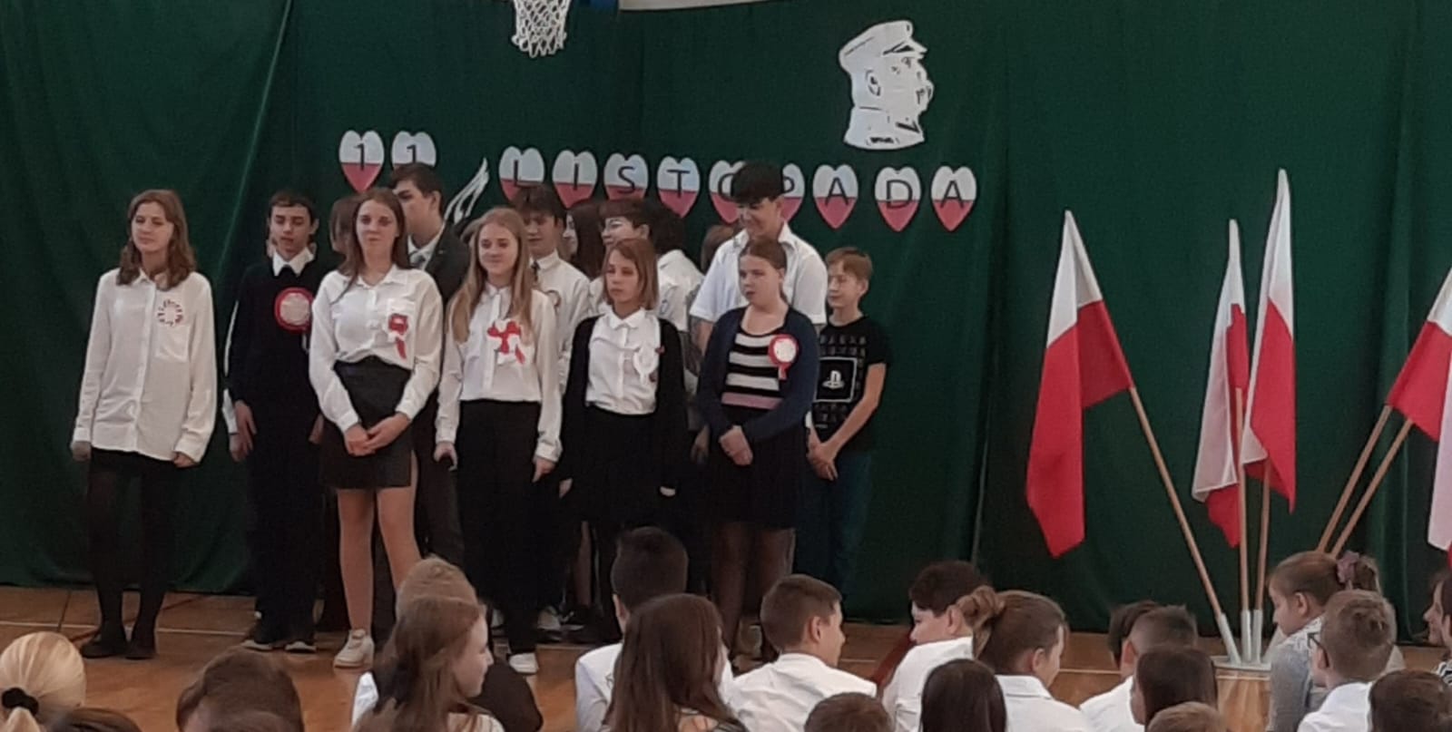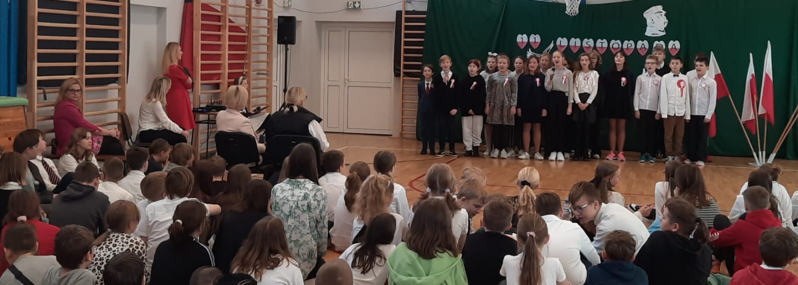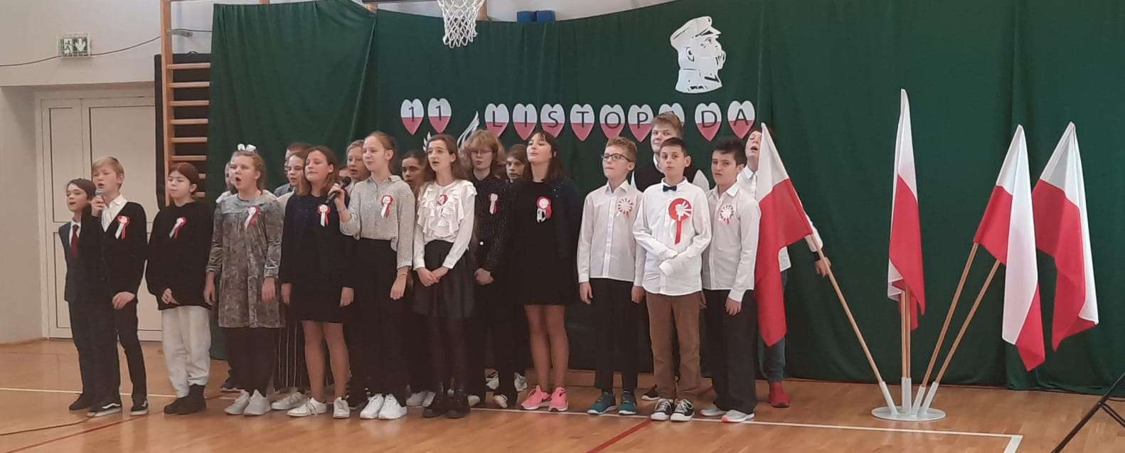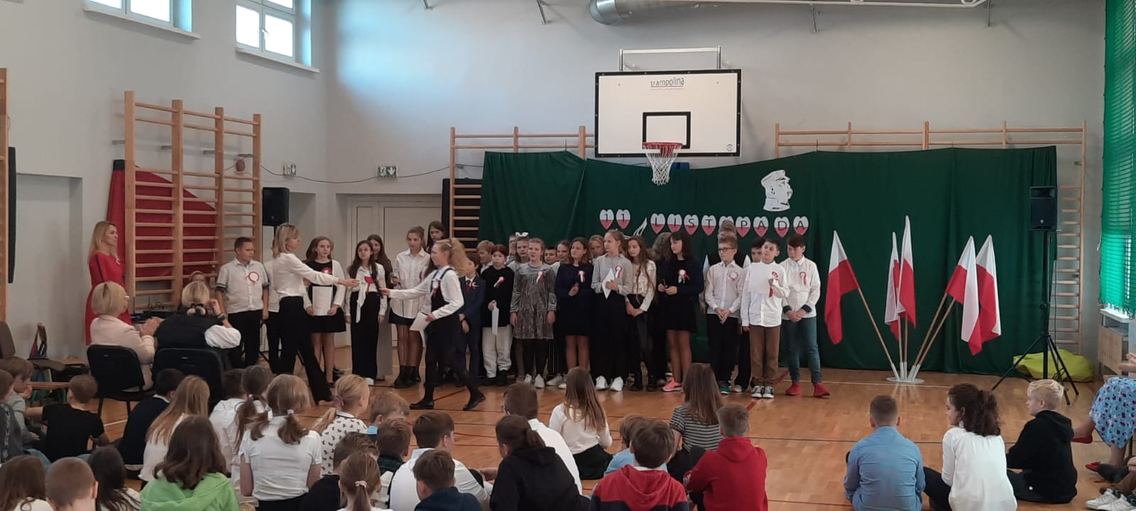 Dnia 8 listopada w naszej szkole wspólnie świętowaliśmy Narodowy Dzień Niepodległości. Uczniowie przygotowali piękne przedstawienie, które przypomniało wszystkim ważne informacje związane z tym niezwykle ważnym Świętem. Wspaniale zabrzmiały wykonywane przez uczniów pieśni patriotyczne, a komentarze do nich pomogły nam lepiej zrozumieć sens utworów. Zaangażowanie wykonawców i ich talenty wokalne zachwyciły wszystkich!