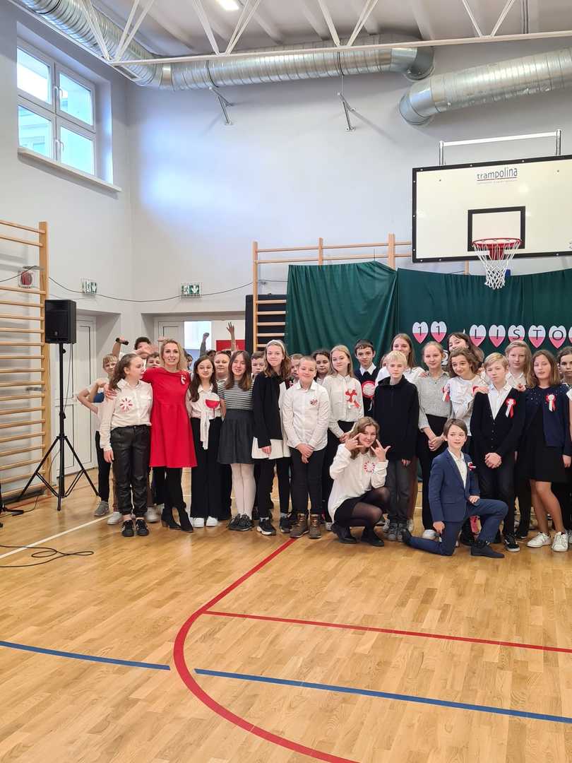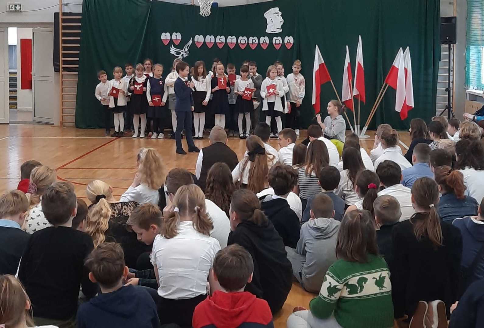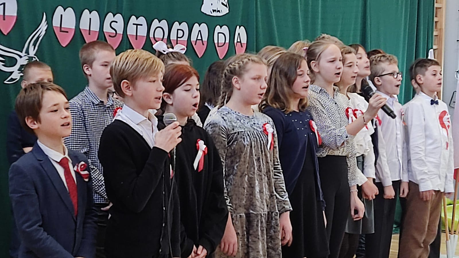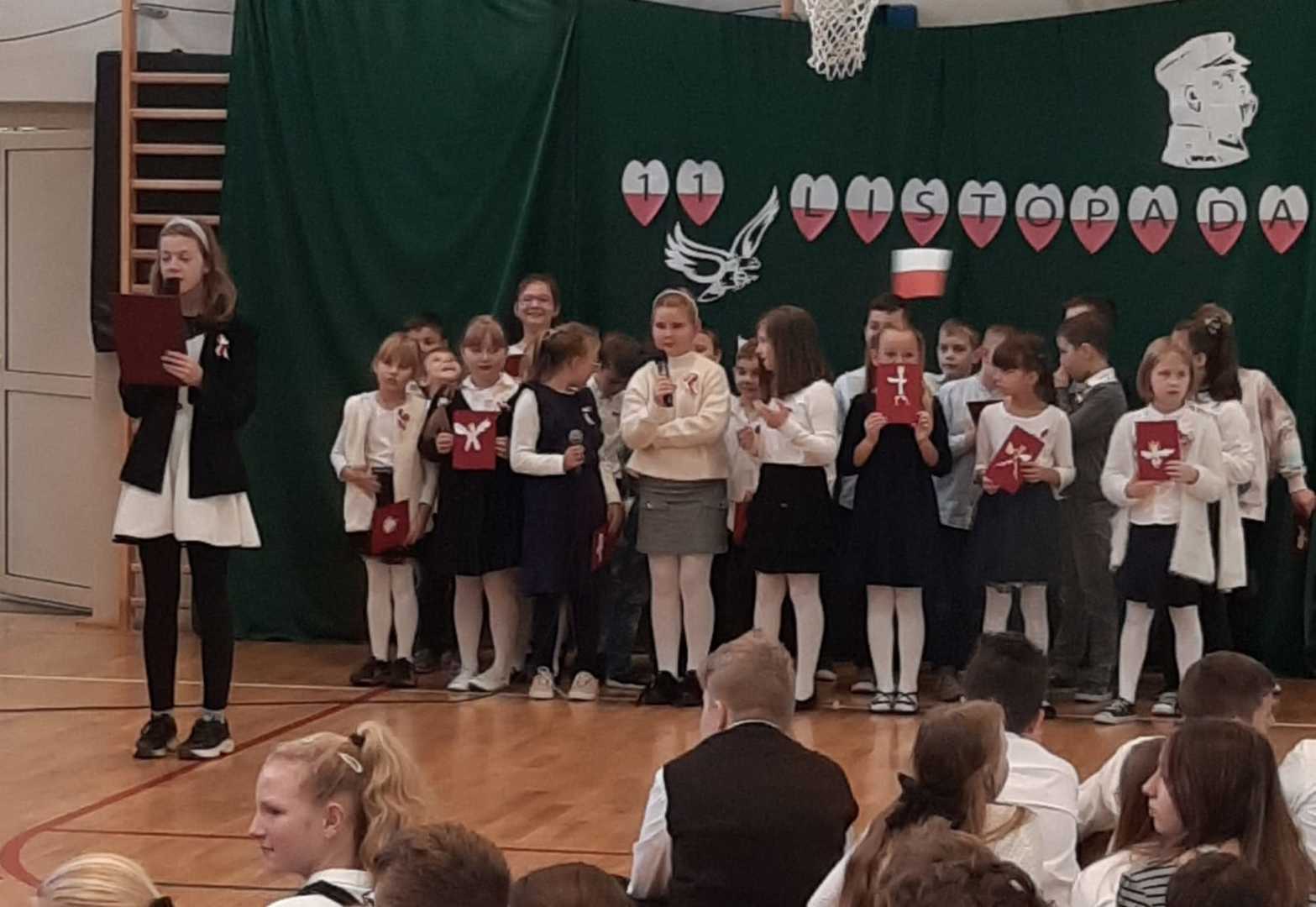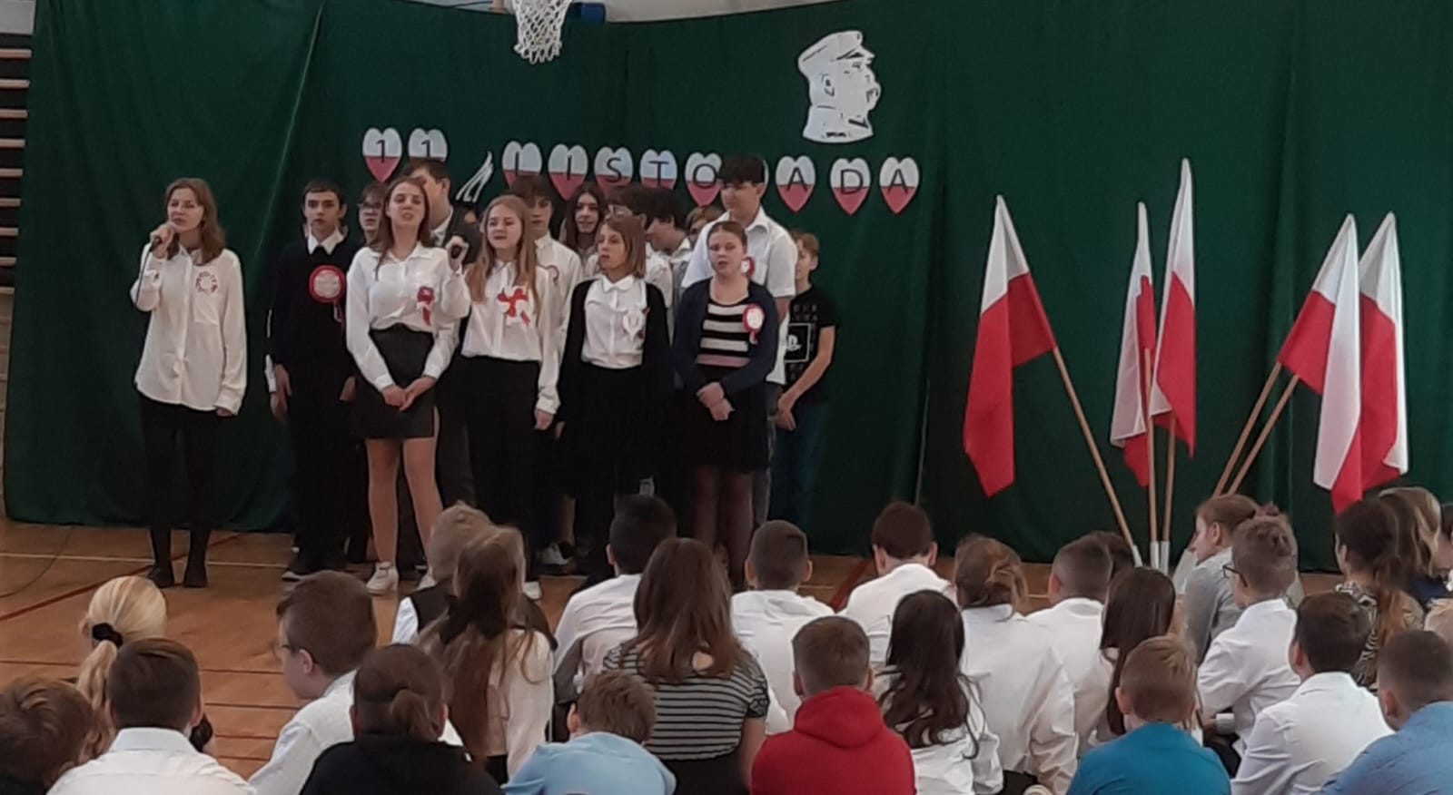 Dnia 8 listopada w naszej szkole wspólnie świętowaliśmy Narodowy Dzień Niepodległości. Uczniowie przygotowali piękne przedstawienie, które przypomniało wszystkim ważne informacje związane z tym niezwykle ważnym Świętem. Wspaniale zabrzmiały wykonywane przez uczniów pieśni patriotyczne, a komentarze do nich pomogły nam lepiej zrozumieć sens utworów. Zaangażowanie wykonawców i ich talenty wokalne zachwyciły wszystkich!