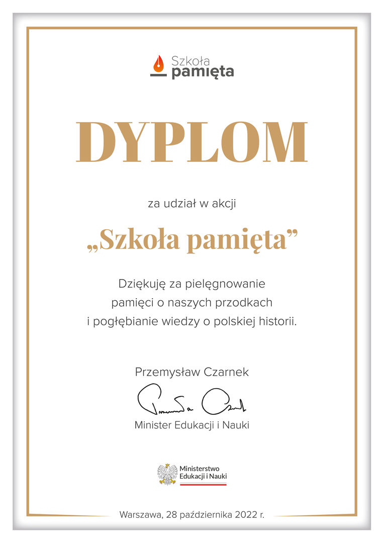 Podsumowanie akcji #SzkołaPamięta znajduje się na stronie gov.pl - https://www.gov.pl/web/edukacja-i-nauka/ponad-11-placowek-wzielo-udzial-w-akcji-mein-szkolapamieta-dziekujemy