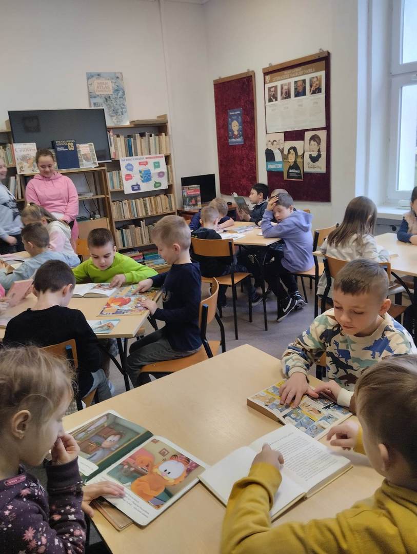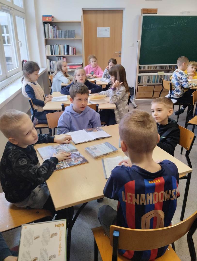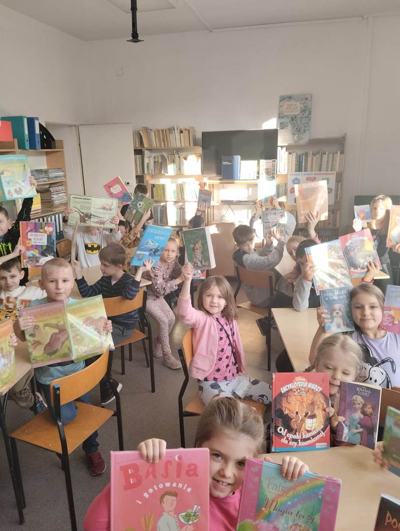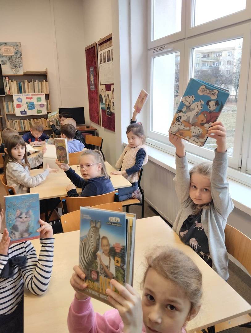 Po feriach uczniowie trzech klas pierwszych zostali czytelnikami biblioteki szkolnej . Podczas lekcji bibliotecznej na której poznali wędrówkę książki od momentu jej napisania do wydania i wypożyczenia w bibliotece. Zapoznali się z regulaminem szkolnej wypożyczalni, księgozbiorem dla dzieci, zasadami obowiązujacymi czytelnika. Wreszcie mogli wypożyczyć książkę, która im się podobała.