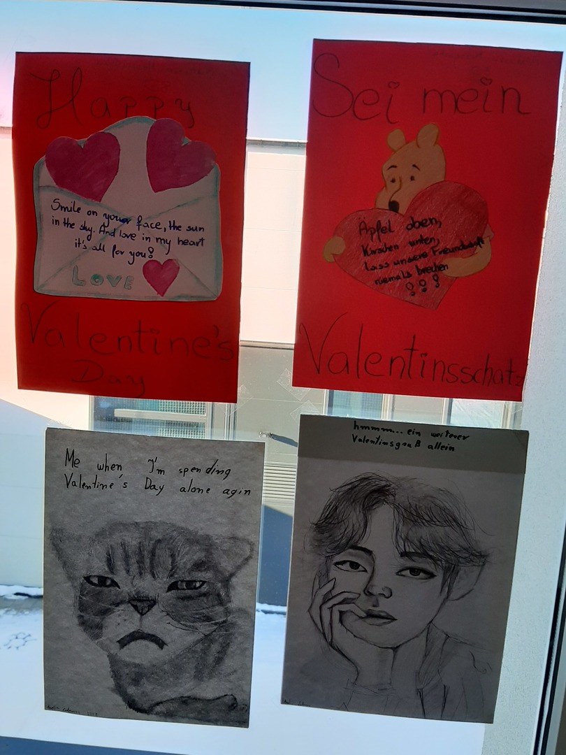 Konkurs polegał na wykonaniu pracy artystycznej wraz z elementami języka angielskiego i niemieckiego. Pracę należało wykonać z użyciem ciekawej techniki artystycznej. Prace zostały zaprezentowane w pracowni językowej, wprowadziły nas w nastrój walentynkowy.