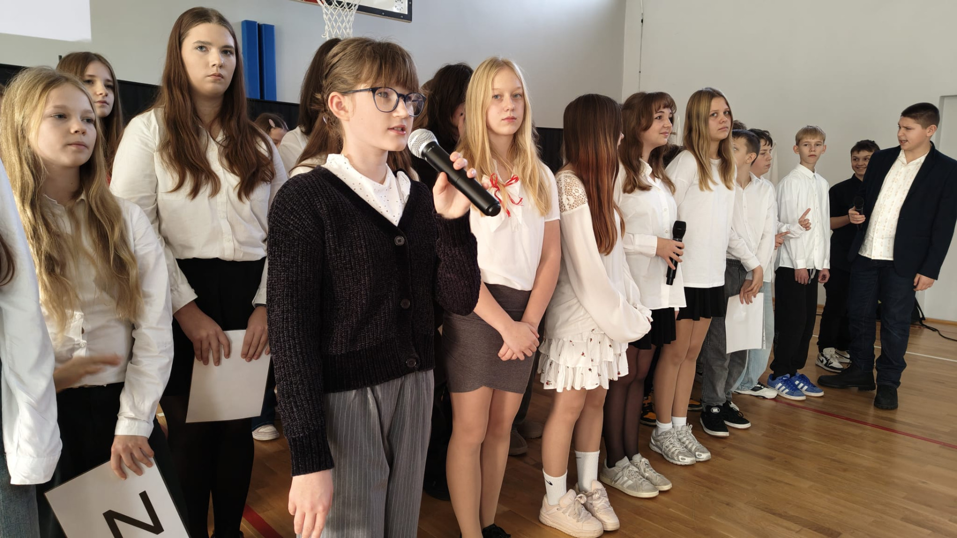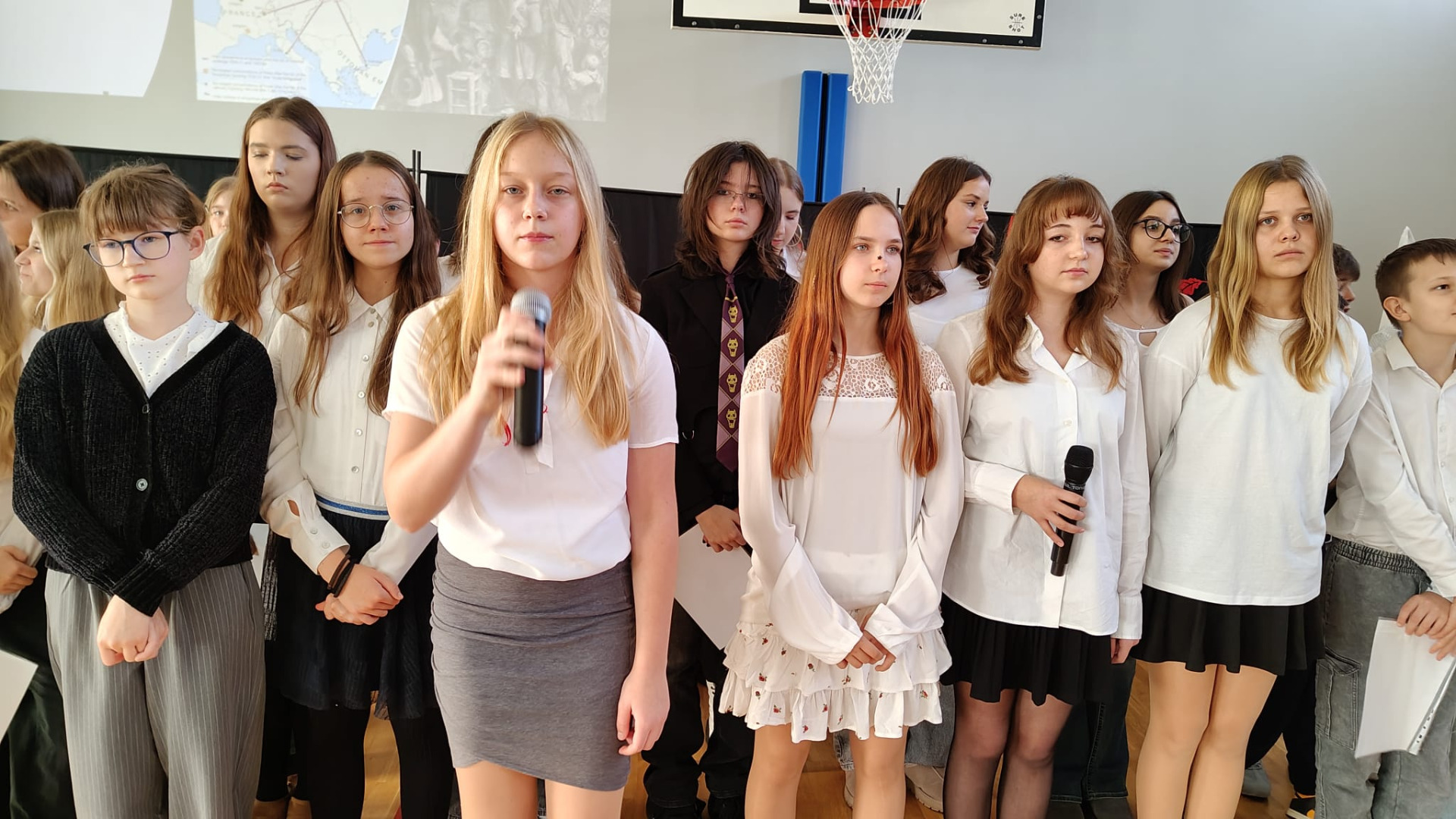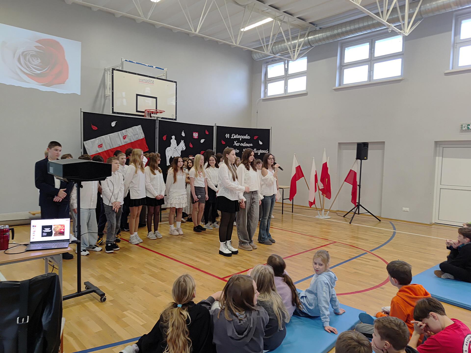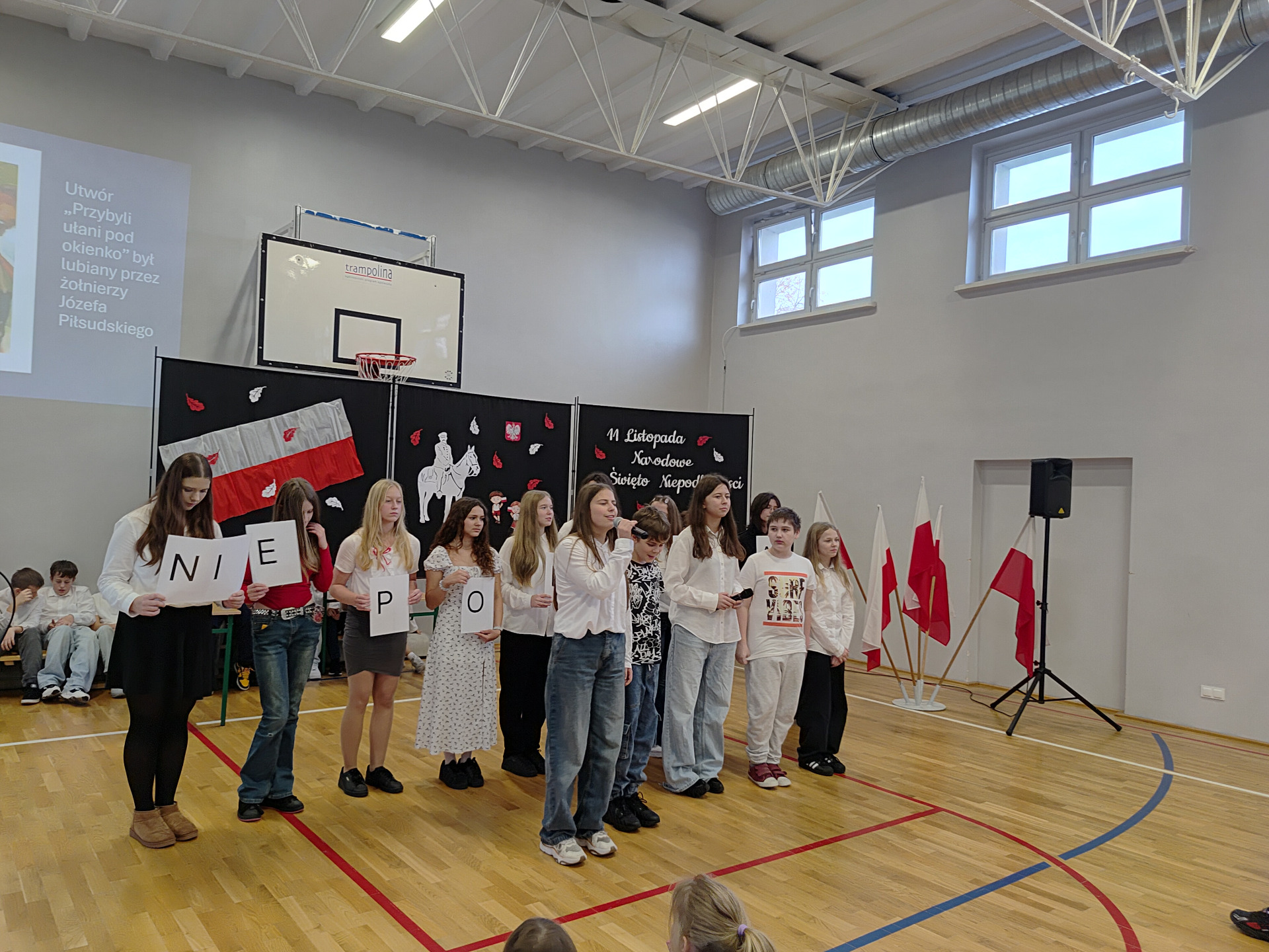 Dnia 5 listopada odbyła się uroczysta akademia ,, Piesń ujdzie cało..." z okazji 107 rocznicy odzyskania przez Polskę niepodległości. W przedstawieniu brała udział klasa 7a i klasa 7c .