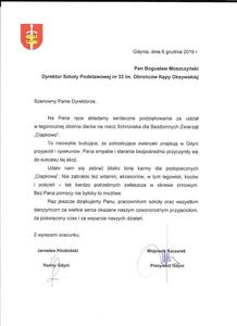 Podziękowanie za dary dla gdyńskiego "Ciapkowa"